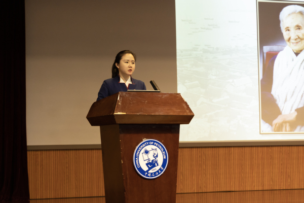 宣讲会以纪录片《共和国脊梁》为开场,宣讲员杜雨从“荣成之子,潜心求学”、“扬名海外,毅然归国”、“两弹一星,功勋卓越”、“家国情怀,大师风范”、“以身许国,壮烈牺牲”、“怀瑾佩瑜,爱在天际”、“高山仰止,永远怀念”七个部分讲述了郭永怀这位优秀中国共产党党员、伟大科学家 、“两弹一星”元勋的家国情怀和人生历程。宣讲员杜雨用生动的语言,结合相关视频和图片,将郭永怀的一段段感人的故事展现在师生面前,不少师生为之潸然泪下。