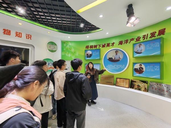 图1 讲解员介绍琅琊台集团对现代技术的应用 于佳琪摄
