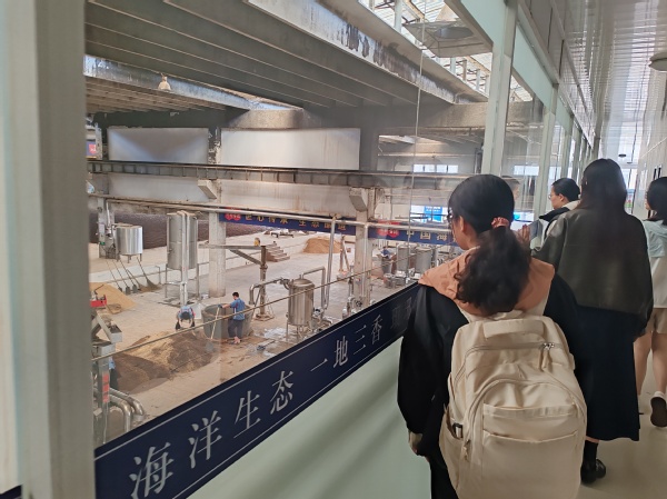 活动伊始,讲解员向同学们介绍了琅琊台酒的悠久历史与今天的酿酒技术。琅琊台酒是青岛琅琊台集团旗下的一款白酒。其酿造历史可以追溯到2000年以前,发轫于春秋战国,繁荣于秦汉,鼎盛于唐宋,其酿造始于越王勾践。具有“窖香浓郁、绵甜甘冽、落口爽净、回味悠长”等浓香型白酒特点。同学们在活动过程中参观了琅琊台集团的产品展厅和酿酒工坊,了解了琅琊台集团的发展历程,不仅见到了原汁原味的酿酒过程,也见到了非遗传承与现代科学技术的奇妙联动。活动过程中,同学们还品尝了琅琊台白酒和琅琊台集团生产的低糖饼干,切身体会到了浓厚的琅琊台酒香。