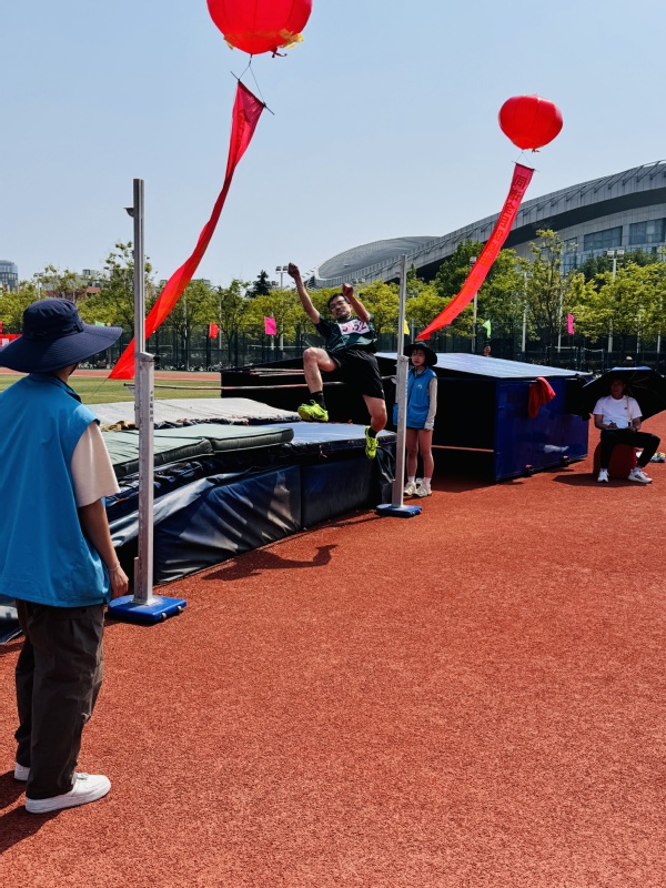 图9 姜飞老师参加跳高比赛 刘瀚文摄