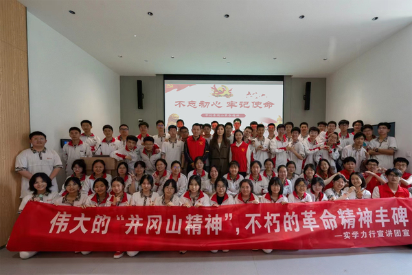 随后,在大学生活动中心二楼报告厅,实学历行宣讲团队长王宇江向学生们宣讲了井冈山精神:①坚定不移的革命信念。②坚持党的绝对领导。③密切联系人民群众的思想作风。④一切从实际出发的思想路线。⑤艰苦奋斗的作风。革命先辈的精神激发了学生们的爱国热情和奋斗精神,大家纷纷表示要谨记革命先辈的忠告、学习革命先辈的精神。