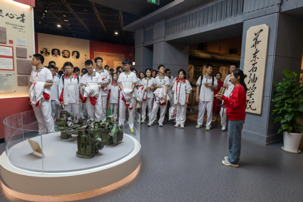 在参观校史馆的过程中,学生们通过一件件珍贵的历史文物和详实的文字资料,了解了中国石油大学的发展历程和辉煌成就,感受石油大学的惟真惟实的校训,“实事求是、艰苦奋斗”的校风。