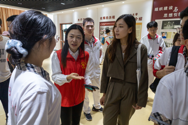 图12 校史馆讲解员向学生介绍学校历史 刘瀚文摄