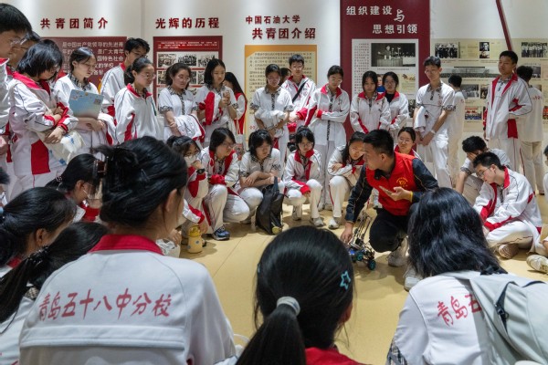 接下来,在团情团史教育基地,学生们聆听了关于团情团史的详细讲解,从共青团历史、组织建设与思想引领、校园文化、创新创业、志愿服务和社会实践等五个大方面了解了共青团的发展历史和重要意义。同时也介绍了石大共青团艰苦奋斗的历程和建校以来在各方面取得的辉煌成就,宣讲“家国同心 艰苦奋斗 惟真惟实 追求卓越”的石大精神,增强了在场学生对共青团的认同感。