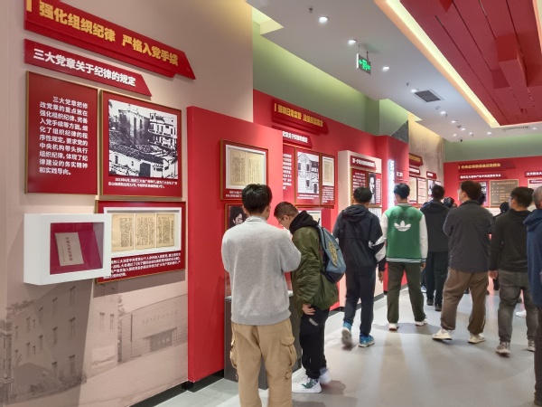随后,师生党员们来到青岛市红景新区教育基地暨城市基层党建实训基地参观。在基地纪律馆,师生党员们学习了百年来党的纪律建设的成就和经验。了解到中国共产党诞生之初,就把严明铁的纪律、建设廉洁政治、反对腐败作为党的鲜明立场和重大原则。纪律建设保障并服务党和国家事业取得历史性成就,奠定了马克思主义最强大执政党建设的理论、制度、实践和政治基础,证明了中国共产党为什么能、马克思主义为什么行、中国特色社会主义为什么好。师生们深刻领会到铁的纪律是党葆有旺盛生命力和强大战斗力、实现初心使命的根本保障,也是社会主义制度体系的核心优势所在。