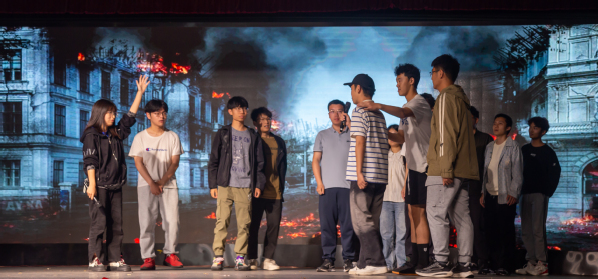 中场活动通过播放经典红色影片,同学们进行激烈地抢答角逐,判断各个历史事件或历史人物,在一幕幕印象深刻的画面中感受着革命前辈的爱国热忱与不惧牺牲的伟大精神,让同学们受益匪浅。
