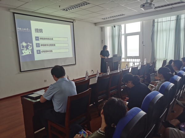 张欣老师进行了“本科课程教学过程管理和试卷资料归档标准”的讲座,针对5月份教学院部教育教学审核评估评建工作的检查中专家们提出的问题,就本科课程教学过程管理和试卷资料归档进行了规范说明。解释了学校、学院两级对授课前、授课中、课程考核等方面的管理文件以及实施细则,明确了任课教师和课程负责人在试卷资料存档方面的分工和职责,以促进我院本科教育管理更加科学、规范、有序。