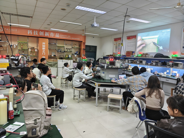 实操环节中大家热情高涨,纷纷拿起焊枪,投入到紧张而专注的练习中。在实验室的焊接工位上,他们仔细观摩、反复练习,不仅熟练掌握了多种焊接方法的基本技巧,还学会了如何应对焊接过程中可能遇到的各种问题。通过此次培训,同学们的焊接技能得到了显著提升,为未来的学习和竞赛奠定了坚实的基础。