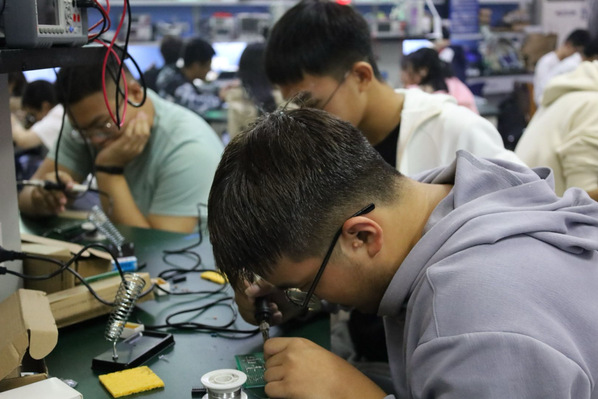 图3 新生认真进行焊接练习 蔡佳怡摄