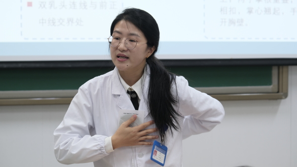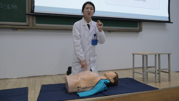 图2 陈静老师讲解心肺复苏正确做法 黄卫宇摄