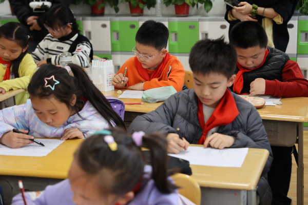 活动开始,为了拉近学生与老师之间的距离,杨丽芳组织进行了“房树人”绘画小游戏。学生们发挥想象力,认真完成了每一幅画作,课堂氛围变得更加轻松。