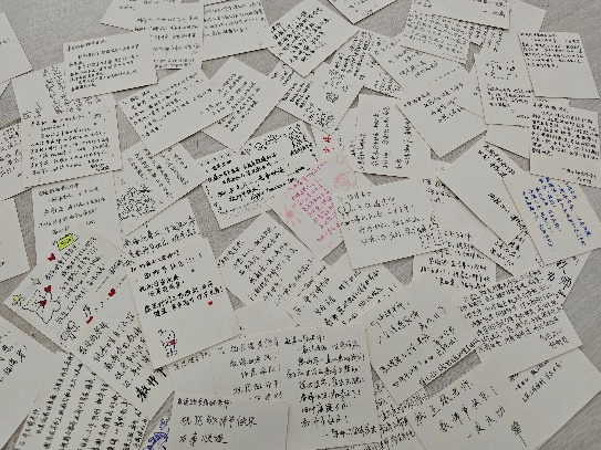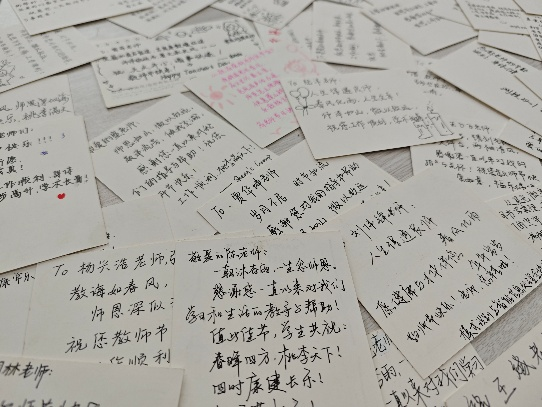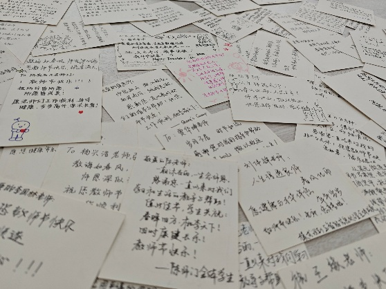 本次活动覆盖全院各个教研室和行政办公室,学生们提前一周精心策划,统一设计并制作了近两百张手工贺卡。贺卡上既有温馨的手绘图案,也有真挚的手写祝福,字句朴实却饱含深情,传递着学生对老师的感激与谢意。“这些话语比任何奖项都珍贵,这是身为教师最大的幸福!”一位教授在收到贺卡后表示。活动不仅拉近了师生距离,也展现出学子们不忘师恩、传承情谊的良好风尚。