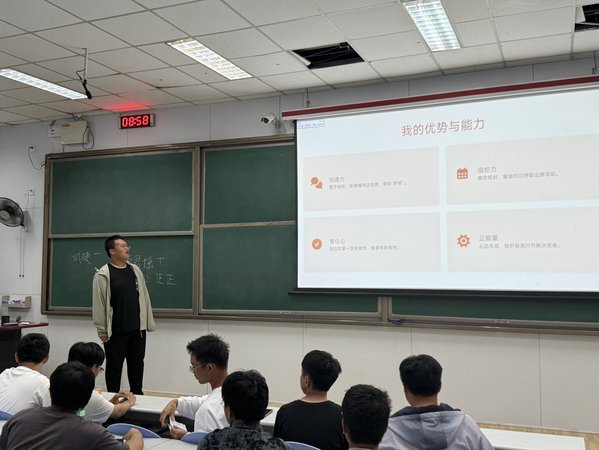 9月23日,我院自动化专业2504班于西环101教室成功举行首次班会暨班委竞选活动。本次班会由朋辈导师孙玮辰主持,班主任李志帅老师及班级全体新生共同参与。会议组织有序、气氛活跃,为新生集体的初步融合与后续建设奠定了良好基础。