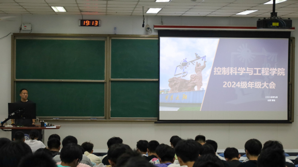 我院2024级年级大会在西环201隆重召开。此次大会由齐志伟老师主持,2024级全体本科生参加,旨在帮助同学们明晰学校政策,强化安全意识,了解综合测评相关事宜,为同学们的大学生活指引方向。