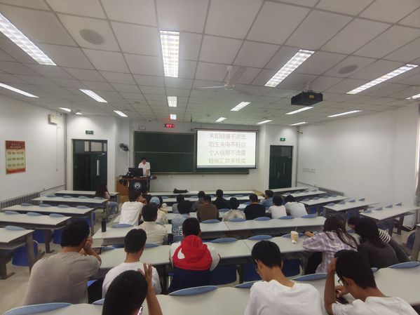 接着,朋辈导师张清晨特别围绕防范电信诈骗主题,通过剖析近期高发的"刷单诈骗""冒充客服"等典型案例,深入浅出地讲解了诈骗分子的常见手法和防范要点,提醒同学们要时刻保持警惕,守护好自己的财产安全。