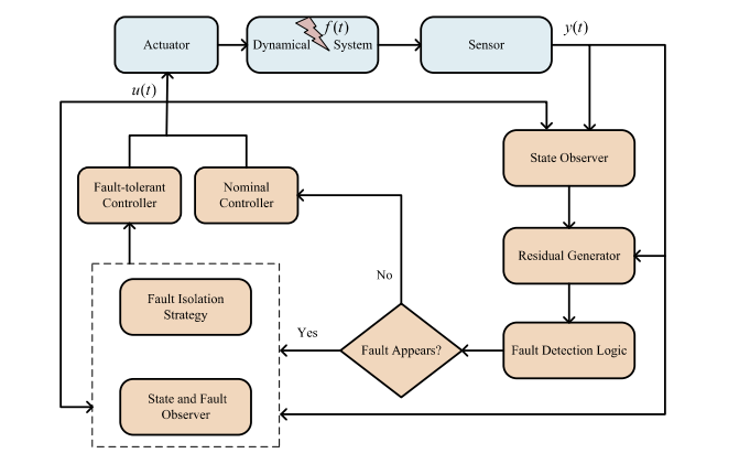 本文研究了具有未知干扰和间歇性故障的动态线性系统的固定时间主动容错控制问题与传统的主动容错控制不同,本文考虑了间歇性故障在一定时间内出现和消失的固定时间控制问题整个主动容错控制框架由故障检测、故障隔离、故障和状态估计以及可重构控制器构成。通过利用基于观测器的状态估计器,对状态和故障进行了很好的估计,并提出了一种故障诊断方案,以便在固定时间内检测和隔离间歇性故障。容错控制器提供闭环系统的全局实用固定时间稳定性,其中两种切换状态分别对应间歇性故障的出现和消失最终,通过设计主动容错控制器对间歇性故障进行补偿