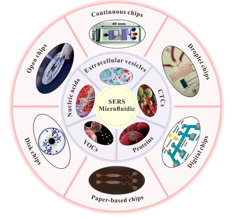 癌症是全球第二大死亡原因,许多研究人员发现,早期筛查和诊断大大降低了癌症相关死亡率。鉴于 CTM 有可能为癌症的发生和发展提供有价值的见解,因此在癌症诊断中使用循环肿瘤标志物 (CTM) 是有道理的。在过去的二十年里,基于表面增强拉曼光谱 (SERS) 的微流体技术在生物医学领域取得了显著进步。它已成为一种成熟的 CTM 检测技术。在本综述中,重点介绍了基于 SERS 的微流控技术在 CTM 检测领域的最新发展,包括分类、识别和捕获方法、检测模式以及新的策略和应用。目的是强调植根于基于 SERS 的微流控技术在生物医学中的检测方法的重要性,并促进其扩展到各种应用。