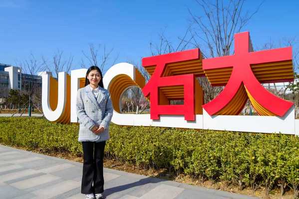 图三 王宇江在“UPC 石大” 标识前留影