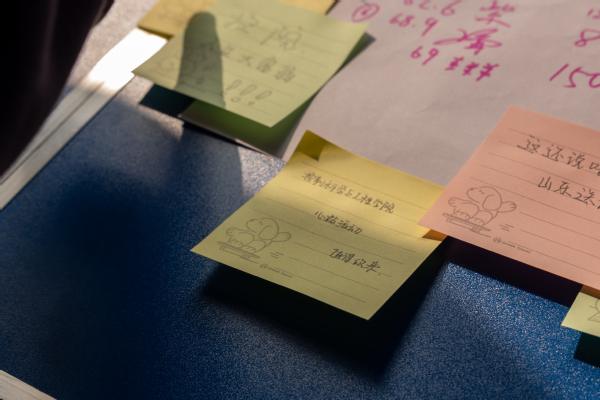 游戏结束后,现场还设置了暖心互动区,大家可以在便利贴上写下真挚寄语,或绘制可爱的Q版图像,一张张纸条承载着善意与温暖,成为游园会里的别样风景。我院的游戏摊位前始终人头攒动,同学们排着长队踊跃参与,欢声笑语不断。