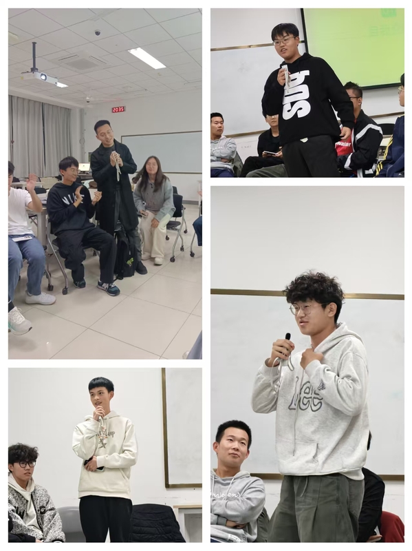 随后进入“抢数字”小游戏环节。游戏规则为:从1开始依次报数,报数者需同时站起来;若两人同时喊出同一数字或同时站起,则需接受“抽签任务”惩罚;成功单独报数者可暂时“安全”离场,直至报到数字15。剩余未报数的同学需继续参与下一轮,直至最后几人仍需单独报数,失败者同样需抽签完成趣味任务。游戏过程紧张又欢乐,有同学因默契“撞数”而被罚学动物叫声,也有同学抽到用方言朗诵诗词,还有人需要即兴表演一段舞台走秀。整个环节不仅打破了陌生感,更在轻松互动中增进了彼此的了解与信任。