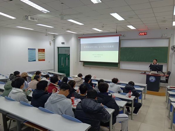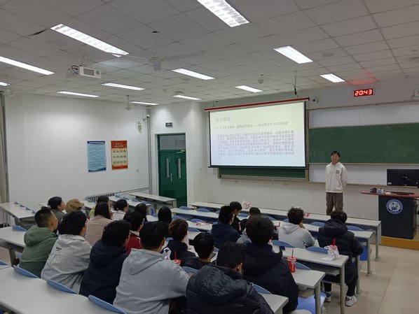班会伊始,朋辈导师王早就近期高等数学期中考试成绩进行总结,指出成绩理想的同学可以总结预习、做题等有效方法并坚持,成绩暂时不太理想的同学要及时聚焦错题分析并针对性补强避免跟不上学习节奏。紧接着,朋辈导师王早又分享了自己大一的心路历程和学习方法,希望同学们在大一这个重要阶段好好学习,筑牢知识根基。
