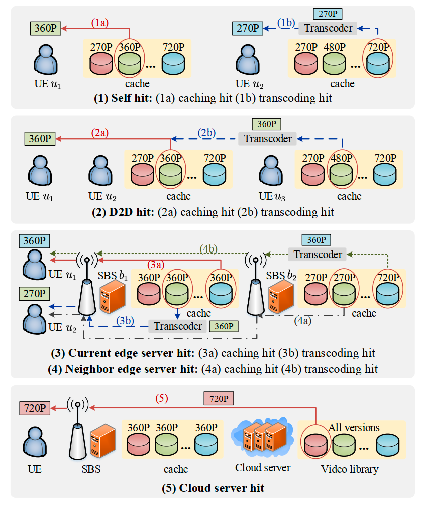 图 2 D2D增强的多码率视频缓存与转码架构图