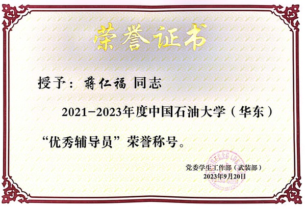 图13 辅导员曾菲参加高校辅导员综合素质能力训练营获优秀展示奖2 图14 蒋仁福获评2021年山东省涉学生安全优秀调研报告征集获评优秀研究成果