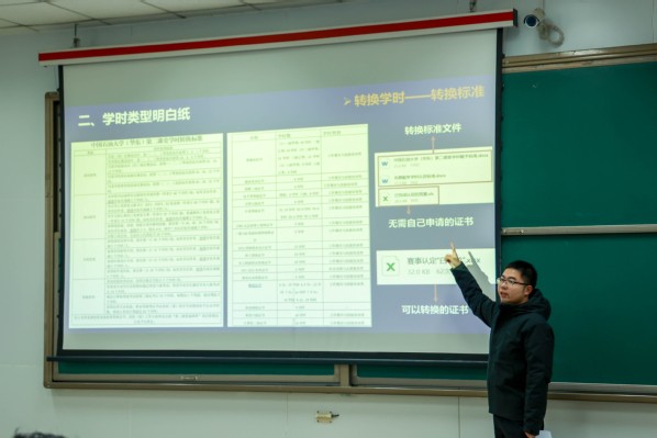 次日,辅导员王早接续团课授课,详细介绍了学校“走进第二课堂,走进青春‘石光’”活动。他讲到,活动设计初衷是引导大学生珍惜青春时光、感悟成长价值,随后系统阐释了第二课堂成绩单制度,包括毕业要求、学时类型及学时转换规则。他表示,“石光”活动开展以来,不仅营造了温馨向上的校园氛围,更让同学们在实践协作中收获了感动与成长,已成为校园文化建设的重要载体。