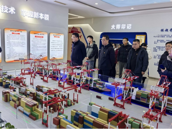 在许振超工作室,浓厚的奋斗氛围与创新精神扑面而来。党员们认真聆听“人民工匠”许振超的励志故事,通过详实的图文展板、珍贵的实物展品和影像资料,深入了解他从一名初中文化的普通码头工人,凭借刻苦钻研与不懈坚持,成长为9次刷新集装箱装卸世界纪录、攻克多项行业技术难题的领军人才的奋斗历程。尤其是他带领团队攻克轮胎吊“油改电”技术、年节约成本超千万元的创新事迹,让在场党员深受触动。大家围绕“如何在岗位上践行工匠精神”展开交流,教学岗党员谈到要将精益求精的态度融入课程设计与人才培养,科研岗党员表示要以攻坚克难的决心突破核心技术瓶颈,管理岗党员则表态要以高效务实的作风做好服务保障工作,切实把工匠精神转化为履职尽责的实际行动。