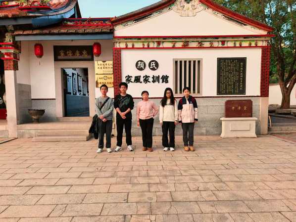 下午,实践队员重返青礁村,探访颜氏开漳堂。这座兼具宗祠功能与文化展示价值的建筑,宛如一座生动的家族文化博物馆,承载着颜氏家族的千年文脉。堂内珍藏的《颜氏家训》,字字珠玑,系统传递着修身、治家、处世的传统智慧,彰显了颜氏家族“诚孝、慎言、检迹”的核心家风。讲解员重点介绍了颜氏先贤、孔门弟子颜回“安贫乐道”“不迁怒,不贰过”的精神境界,凸显了家族深厚的儒学渊源。此外,堂内墙上绘制的“三分天注定,七分靠打拼”等闽南语谚语,既承载着浓郁的乡土记忆,也成为雅俗共融的文化景观。