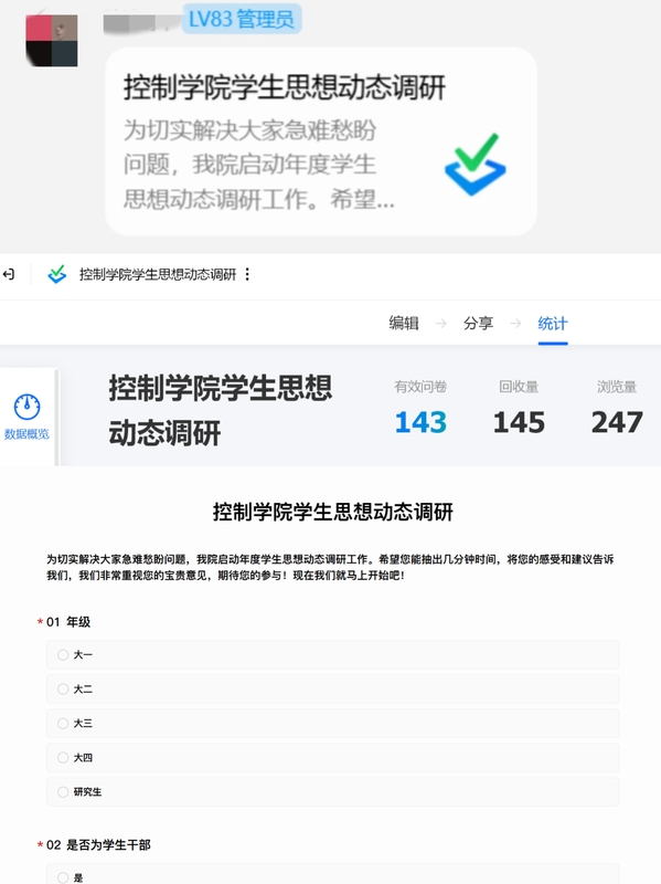 此外,控制学院学生会已将学生思想动态调研与权益提案征集固化为每学期的常态化工作,让“同学心声直通车”持续运行,成为学院与学生之间稳定、畅通的“连心桥”。这一系列机制建设,不仅提升了服务工作的执行力与公信力,也显著增强了学子对学院的归属感和认同感。